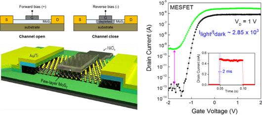 연세대·군산대 연구팀은 절연층을 게이트로 사용하는 방법을 지양하고 전도성 투명산화물인 니켈산화막을 수 나노미터 두께의 이황화몰리브덴 채널위에 적층해 이동도 1200 cm2/Vs를 갖는 쇼트키 트랜지스터를 제작했다.