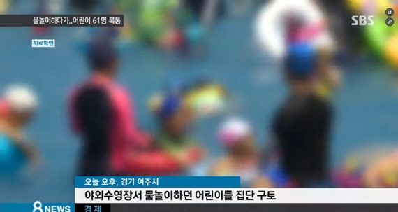 | ▲ 여주에 있는 물놀이장에서 소독약 과다유입 등으로 인해 어린이 수십여명이 놀라 대피, 병원으로 이송되는 사고가 발생했다.SBS 뉴스화면 캡처. |