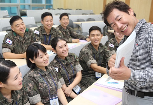 | ▲ 10일 서울 종로구 상명대에서 진행된 '육군본부 문화예술교육'에서 정훈장교 등을 대상으로 배우 박상원씨가 강의를 진행하고 있다. | ||