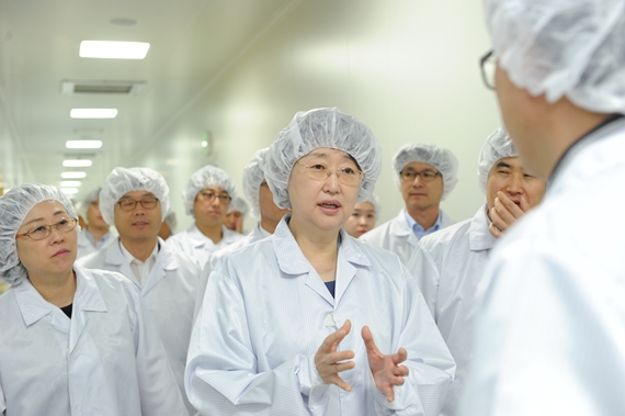 김승희 식약처장은 전남 화순소재 녹십자 4가 독감 예방백신현장에서 ▲4가 독감 백신 접종 적극 권고 ▲백신 개발 현황 및 애로사항 ▲식약처 규제 개선 사항 논의 ▲WHO 사전적격성평가(PQ) 등 국내 제조 백신 발전을 위해 논의했다.