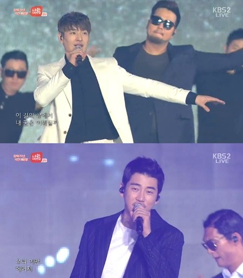 15일 god는 광복70년 국민대합창 '나는 대한민국’에서 '길'과 '거짓말', '니가 있어야 할 곳'에 '촛불하나', 그동안의 히트곡으로 신나는 무대를 선보였다.