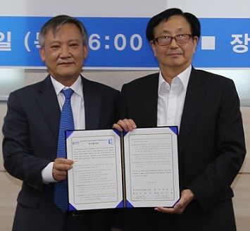 | ▲ 지난 13일 서울 성북구 한성대 학송관에서 진행된 '업무협약 체결식'에서 강신일 한성대 총장(왼쪽)과 이영수 한국생산기술연구원 원장이 기념사진을 촬영하고 있다. | ||