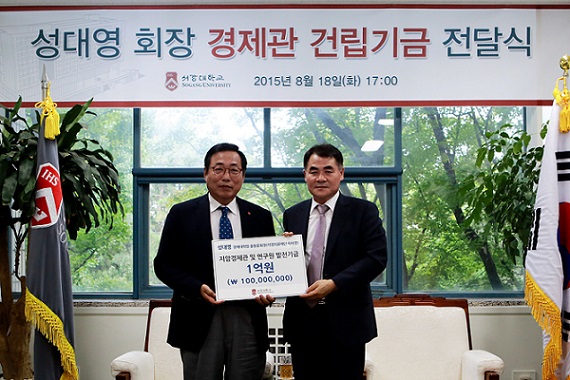 [미디어펜=류용환 기자] 서강대학교는 성대영 위더스제약 대표이사가 ‘지암 남덕우 경제관’ 건립기금 1억원을 기부했다고 19일 밝혔다.