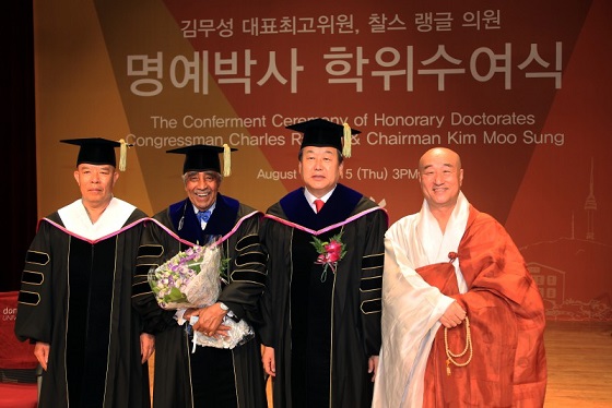 랭글 의원은 “대한민국을 위해 작은 일을 했다고 생각했는데 이렇게 명예로운 박사 학위까지 수여받아 기쁘고 감사하다. 김무성 대표와 함께 학위를 받은 것도 영광스럽게 생각한다”고 말했다.