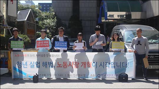 한국대학생포럼은 성명에서 “2000년대 이후 대한민국 사회의 고질적인 문제로 자리 잡은 청년실업이 정점을 향해 치닫고 있다. 올해 7월 청년실업률은 10.2%로 전 달에 비해 개선되는 추세를 보이긴 했으나, 문제의 근본적인 원인이 해결되지 않아 아직도 두 자리 수에 머무르고 있다”며 “노동시장 개혁이 당장의 청년 실업을 해결할 즉각적인 대안이 될 수 있으리라 생각한다”고 주장했다.