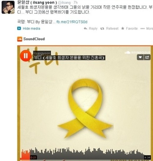 23일 윤일상은 자신의 SNS에 "세월호 희생자분들을 생각하며 그들의 넋을 기리며 작은 연주곡을 헌정합니다. 부디, 부디 그곳에서는 행복하기를 기도합니다"라는 글과 함께 연주곡을 공개했다.