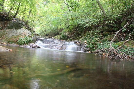 불영계곡 상류에서 흐르는 물은 아기자기한 폭포와 작은 소(沼)를 만들어 자연속에 스며드는 느낌을 준다.