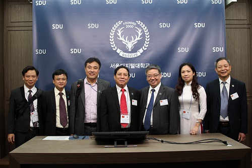 | ▲ 지난달 31일 서울 강서구 서울디지털대를 방문한 베트남 하노이 개방대 관계자 등이 기념사진을 촬영하고 있다. | ||