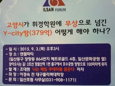 포럼 관계자는“고양시가 휘경학원에 넘긴 Y-City 학교부지(379억원)의 문제점에 대한 정확한 정보를 제공하기 위해 이번 토론회를 개최하게 됐다”고 말했다.