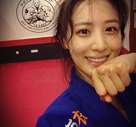 과거 수현은 자신의 SNS에 “뭐니뭐니해도 도복입고 하는 트레이닝이 제일 재밌지~ 오쓰”라는 글과 함께 셀카를 게재했다.