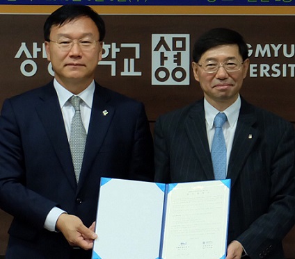 | ▲ 9일 서울 종로구 상명대에서 진행된 '업무협정 체결식'에서 이경근 서울지방조훈청장(왼쪽)과 구기헌 상명대 총장이 기념사진을 촬영하고 있다. | ||