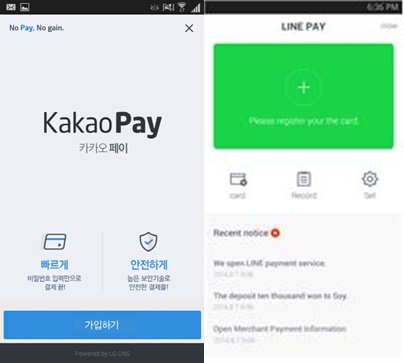 | ▲ 사진은 다음카카오 '카카오페이', 네이버 '라인페이' |