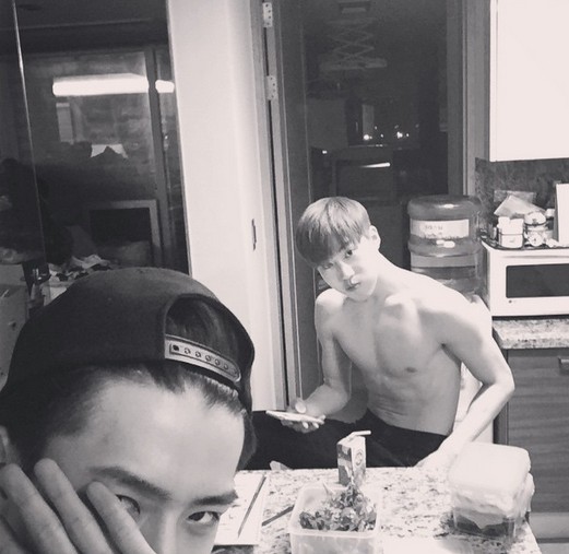 사진 속 세훈은 모자를 거꾸로 착용하고 얼굴을 살짝 가린 채 카메라를 응시하고 있으며, 수호는 상반신을 노출하고 입에는 무언가를 가득 넣고서 포즈를 취하고 있다. 특히 수호의 탄탄한 복근이 이목을 집중시켰다.