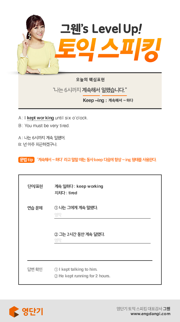 [그웬의 레벨업 토익스피킹] "계속 일했어요" 직장 상사에게 남길 강한 한 마디