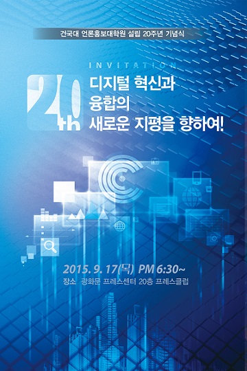 [미디어펜=류용환 기자] 건국대학교 언론홍보대학원은 서울 한국프레스센터에서 ‘디지털 혁신과 융합의 새로운 지평을 향하여’를 주제로 ‘설립 20주년 기념식’을 17일 개최한다.