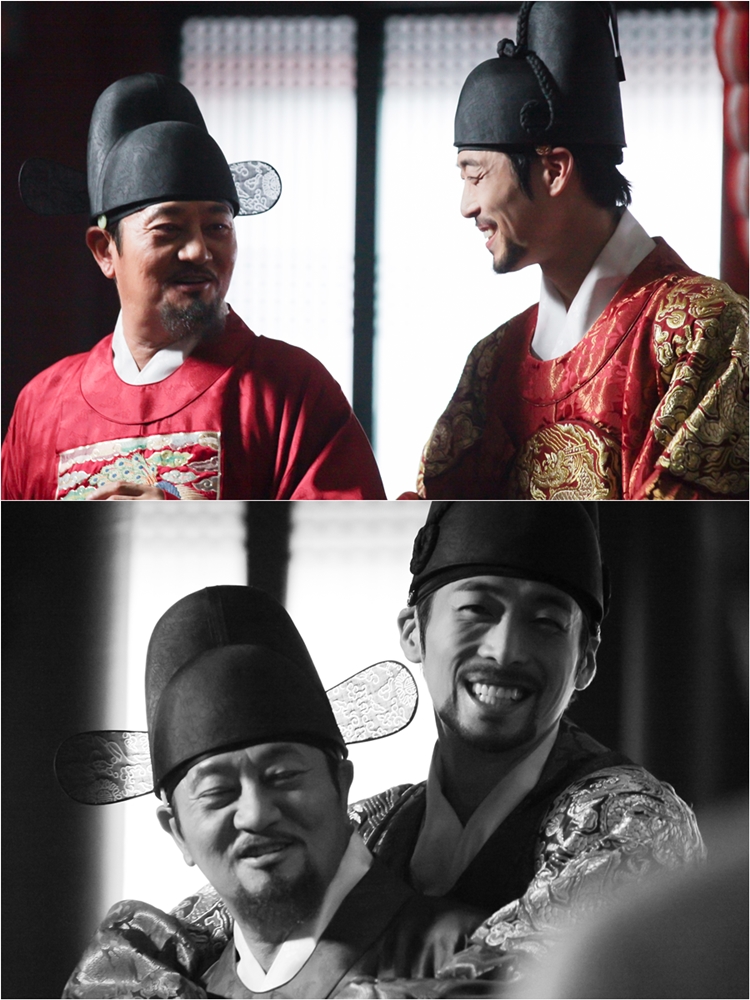'화정' 측은 최근 iMBC ‘화정’ 공식 홈페이지를 통해 김재원(인조 역)과 박준규(김류 역)의 화기애애한 모습을 담은 촬영장 비하인드 스틸을 공개했다.