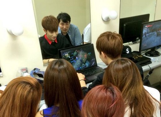 사진 속 서은광은 신난 표정으로 게임에 몰두한 모습이며, 주위에 여자 스태프들과 매니저가 그의 게임하는 모습을 지켜보고 있어 눈길을 모았다.