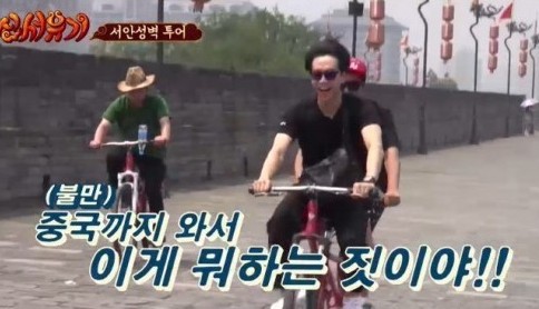 멤버들은 땀을 뻘뻘 흘리며 자전거를 탔고, 은지원과 함께 자전거를 탄 이승기는 "중국까지 와서 이게 뭐하는 짓이야"라고 불만을 드러냈다.