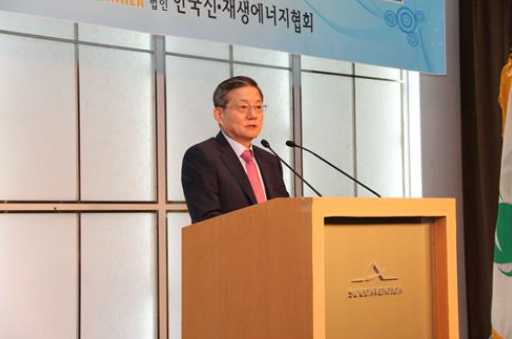 | ▲ 지난 18일 서울 역삼동 과학기술회관에서 열린 임시총회에서 신임 한국신재생에너지협회장으로 선임된 윤동준 회장(포스코에너지 사장)이 취임사를 하고 있다. |