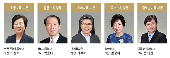 눈높이교육상 수상자는 ▲박정희 인천 은봉초등학교 교장(초등교육) ▲박용태 경상고등학교 교사(중등교육) ▲배주희 효성유치원 원장(유아교육) ▲임경애 홀트학교 교장(특수교육) ▲윤해연 중국 남경대학교 교수(글로벌교육) 등이다.