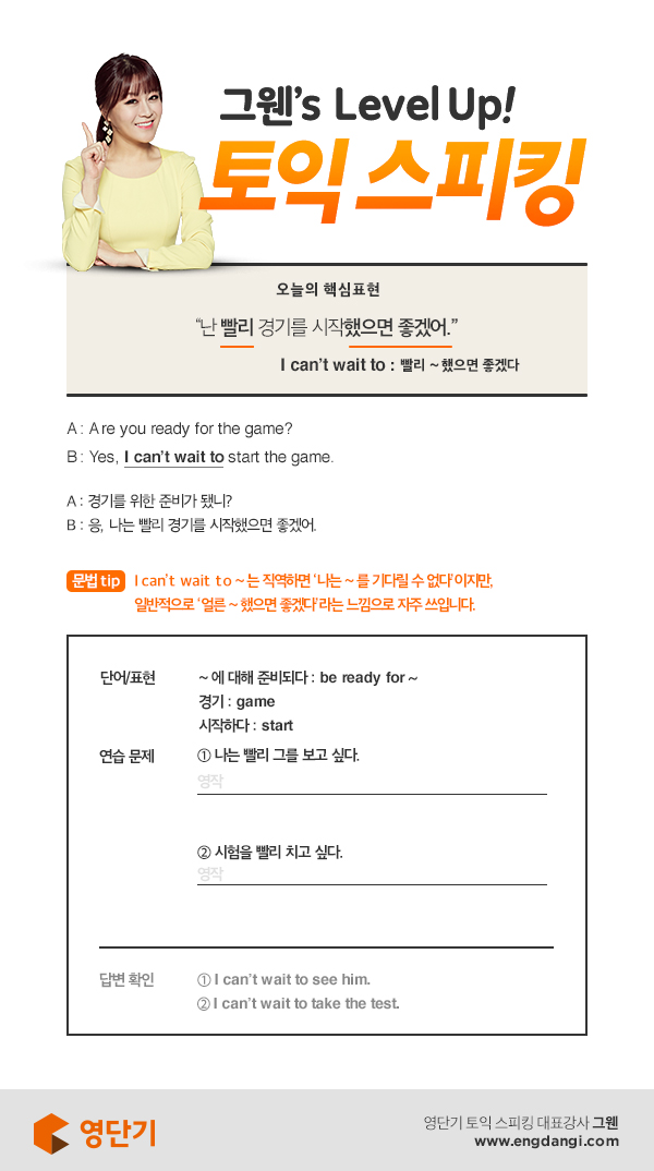 [그웬의 레벨업 토익 스피킹] Are you ready? "빨리 했으면 좋겠다" 문법TIP