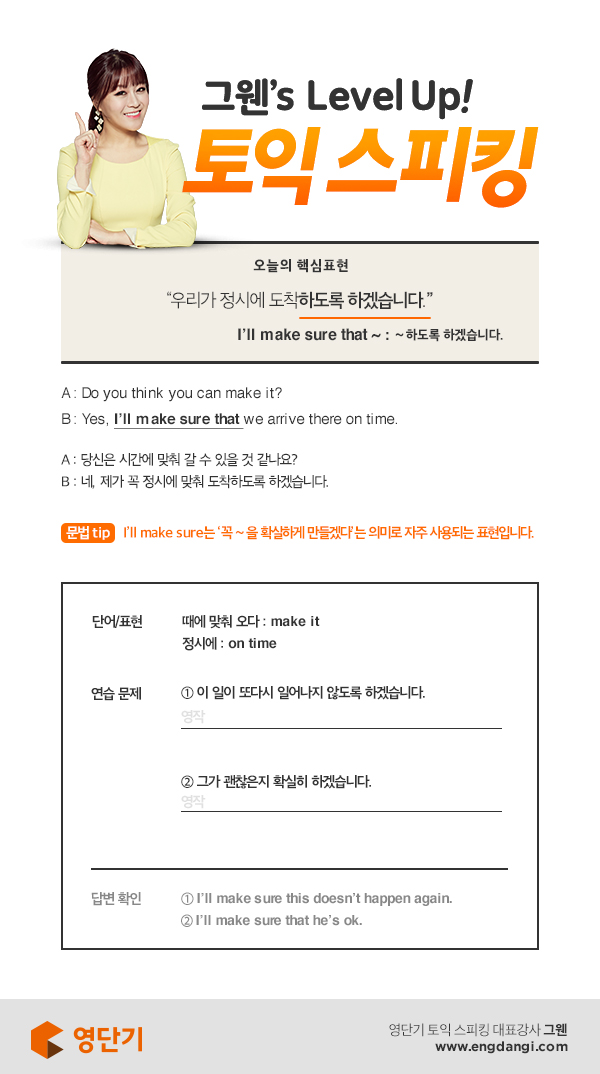 [그웬의 레벨업 토익스피킹] "꼭 ~을 확실하게 만들겠어" 강한 영어 표현