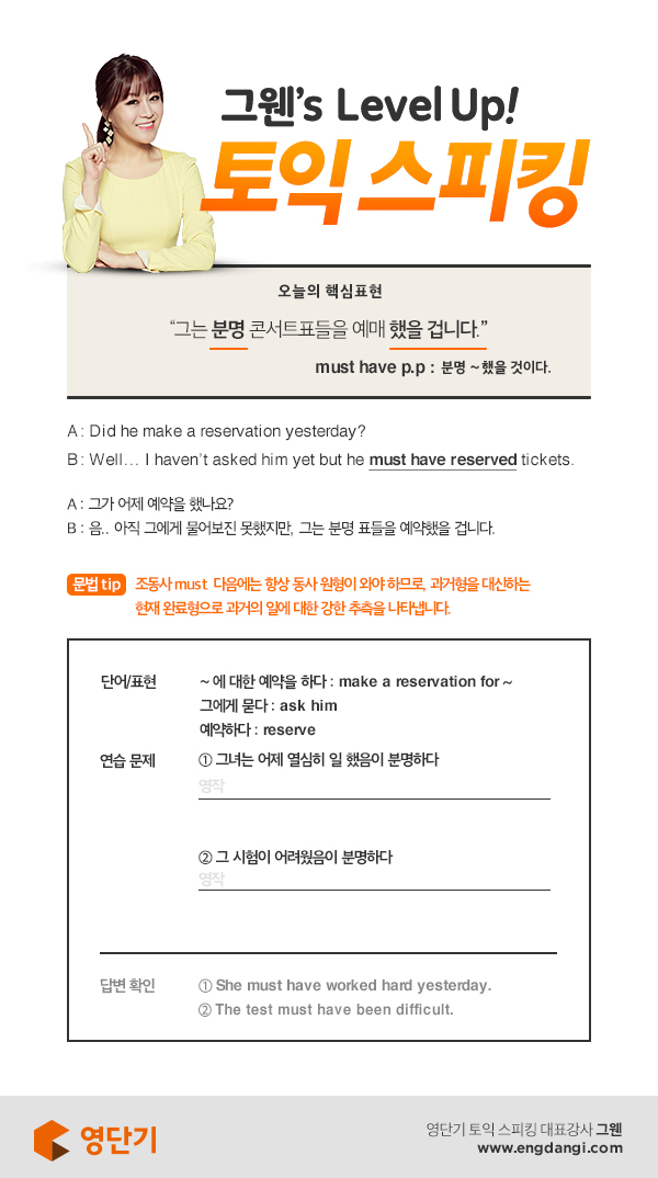 [그웬의 레벨업 토익스피킹] "분명 ~했을 것이야" 오늘의 핵심표현