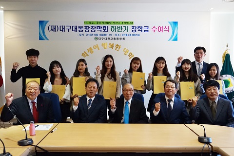 [미디어펜=류용환 기자] 대구대학교 동창장학회는 경북 대구대 경산캠퍼스 성산홀에서 ‘하반기 장학금 수여식’을 13일 개최했다.