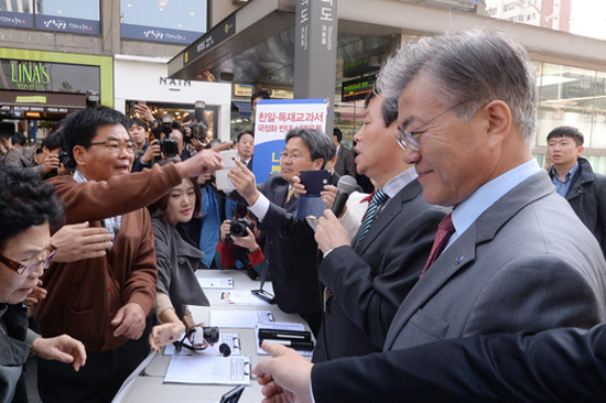 | ▲ 새정치민주연합은 14일 정부의 역사교과서 국정화 결정에 맞서 청와대 앞 집회를 열고 서명운동을 하는 등 3일째 장외투쟁을 이어갔다. 정의당도 이날 광화문 광장에서 역사 교과서 국정화 시도 중단을 위한 대국민 서명운동을 시작했다./사진=연합뉴스 | ||