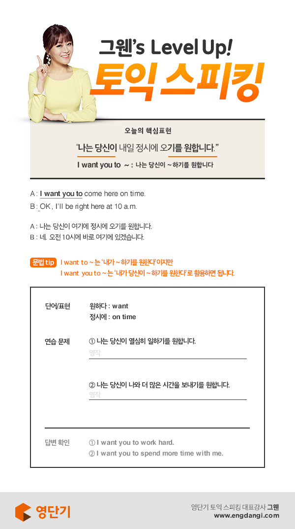 [그웬의 레벨업 토익스피킹] "시간 맞춰 오세요" 상대방에게 원하는 의사 전달하기