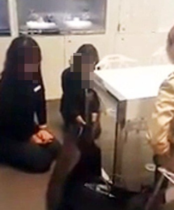 고객은 주머니에 손을 넣은 채 다리를 꼬고 앉아 서비스 문제를 언급하며 훈계조로 점원들을 다그쳤다. 점원들은 고객 앞에서 바닥에 무릎 꿇고 두 손을 가지런히 모은 채 고개조차 들지 못했다.