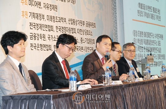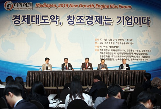 [미디어펜=류용환·신진주 기자] 미디어펜과 자유경제원이 공동주최한 ‘2015 신성장동력 플러스 포럼’ 특별좌담 ‘한반도 통일의 완성, 한강의 기적 넘어 대동강 기적으로’가 21일 진행됐다.