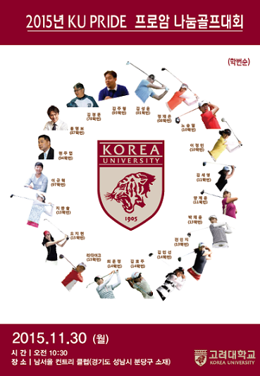 [미디어펜=류용환 기자] 고려대학교는 경기 성남시 남서울컨트리클럽에서 ‘2015년 KU PRIDE 나눔 골프대회’를 30일 개최한다.